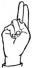 На ћирилици написано АНЂЕЛИЈА ШВРАКА састоји се из 14 слова [?]. Исписано ћириличном једноручном азбуком за глувонеме: